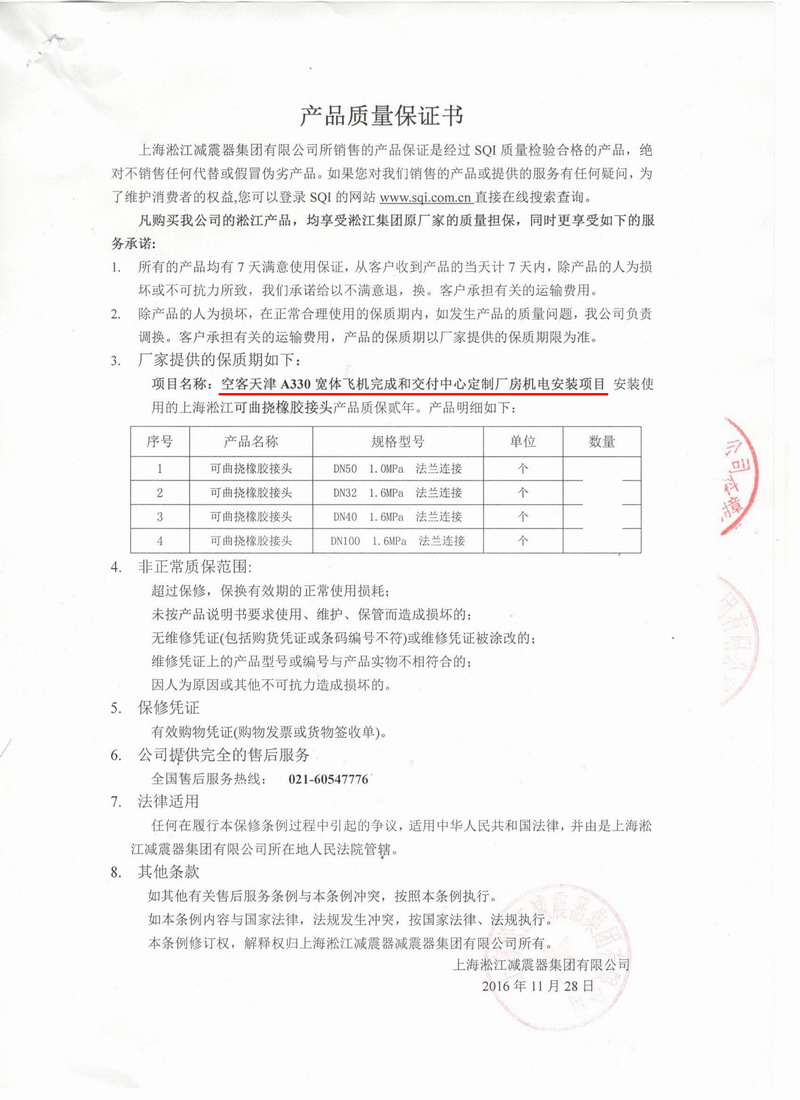 上海淞江減震器集團有限公司官方網站為您介紹:【空客天津A330寬體飛機廠房項目】熱水用橡膠接頭信息,2016年11月25日,淞江集團成功中標空客天津A330寬體飛機完成和交付中心定制廠房機電安裝項目熱水橡膠接頭產品。