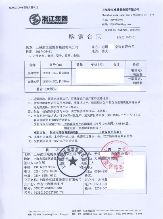 上海淞江減震器集團有限公司官方網站為您介紹【無錫蠡園開發區創意園項目】金屬軟管合同信息,淞江集團常年為各大商場項目配套金屬軟管,過硬的產品質量得到了眾多項目的好評。